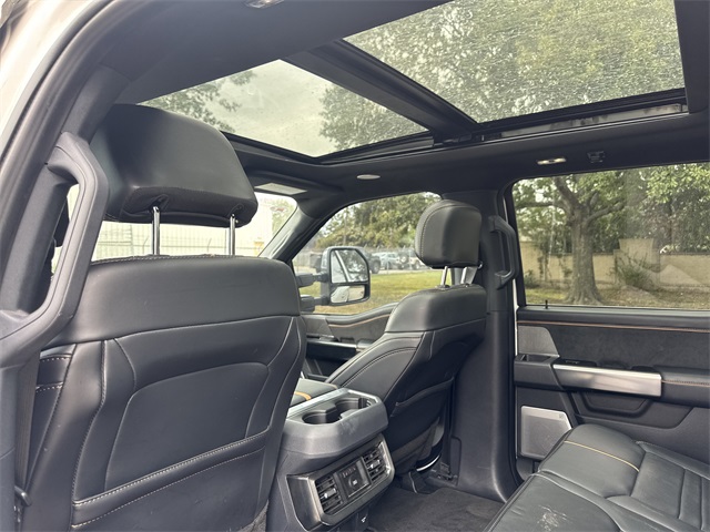 nic-Locking w/3.31 Axle Ratio, Emergency communication system: SYNC 4 911 Assist, Engine Block Heater, Exterior Parking Camera Rear, F-250 >10K GVWR Package, Flow-Through Console, Front anti-roll bar, Front Bucket Seats, Front Center Armrest, Front dual zone A/C, Front fog lights, Front reading lights, Fully automatic headlights, FX4 Off-Road Package, Garage door transmitter, Heated door mirrors, Heated front seats, Heated rear seats, Heated steering wheel, Hill Descent Control, Illuminated entry, Leather steering wheel, LOCAL TRADE IN!, Low tire pressure warning, Memory seat, NAVIGATION, Navigation System, Navigation system: Connected Navigation (includes complimentary 1-year trial), NON SMOKER VEHICLE, Off-Road Specifically Tuned Shock Absorbers, Outside temperature display, Overhead airbag, Overhead console, Panic alarm, Passenger door bin, Passenger vanity mirror, Pedal memory, Power door mirrors, Power driver seat, Power passenger seat, Power windows, PROFESSIONALLY DETAILED FOR DELIVERY!, Rain sensing wipers, Rapid-Heat Supplemental Cab Heater, Rear reading lights, Rear seat center armrest, Rear step bumper, Rear window defroster, Remote keyless entry, Security system, SiriusXM Radio w/360L, Speed control, Split folding rear seat, Steering wheel memory, Steering wheel mounted audio controls, SUNROOF/MOONROOF, SUPER LOW MILES!, SYNC 4 w/Enhanced Voice Recognition, Tachometer, Telescoping steering wheel, Tilt steering wheel, Tough Bed Spray-In Bedliner, Traction control, Trip computer, Turn signal indicator mirrors, Twin Panel Power Moonroof, Unique FX4 Off-Road Box Decal, Variably intermittent wipers, Ventilated front seats. Certified.